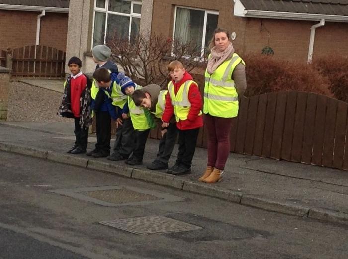 Today, everyone in P4 went out for a walk to practise using the Green Cross Code.  Thank you Nigel for coming to take us around and point out all the safe places to cross near our school.