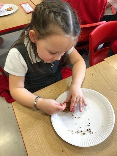 Primary One have started their dinosaur theme by excavating the chocolate chips from cookies! We are looking forward to learning all about dinosaurs and fossils. Roaaaarrrr!